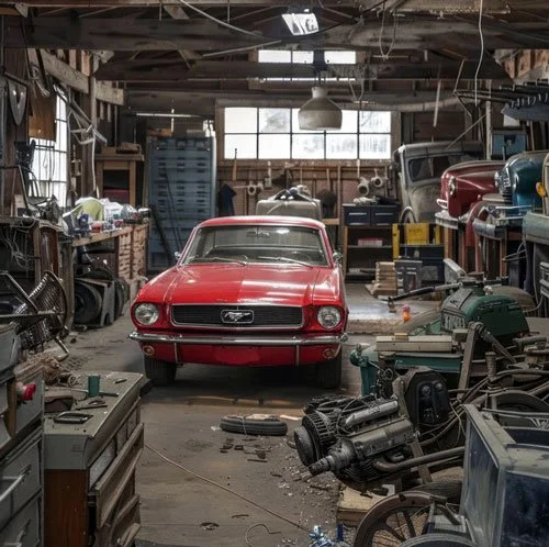 Cars competing with boxes, tools, and hobbies