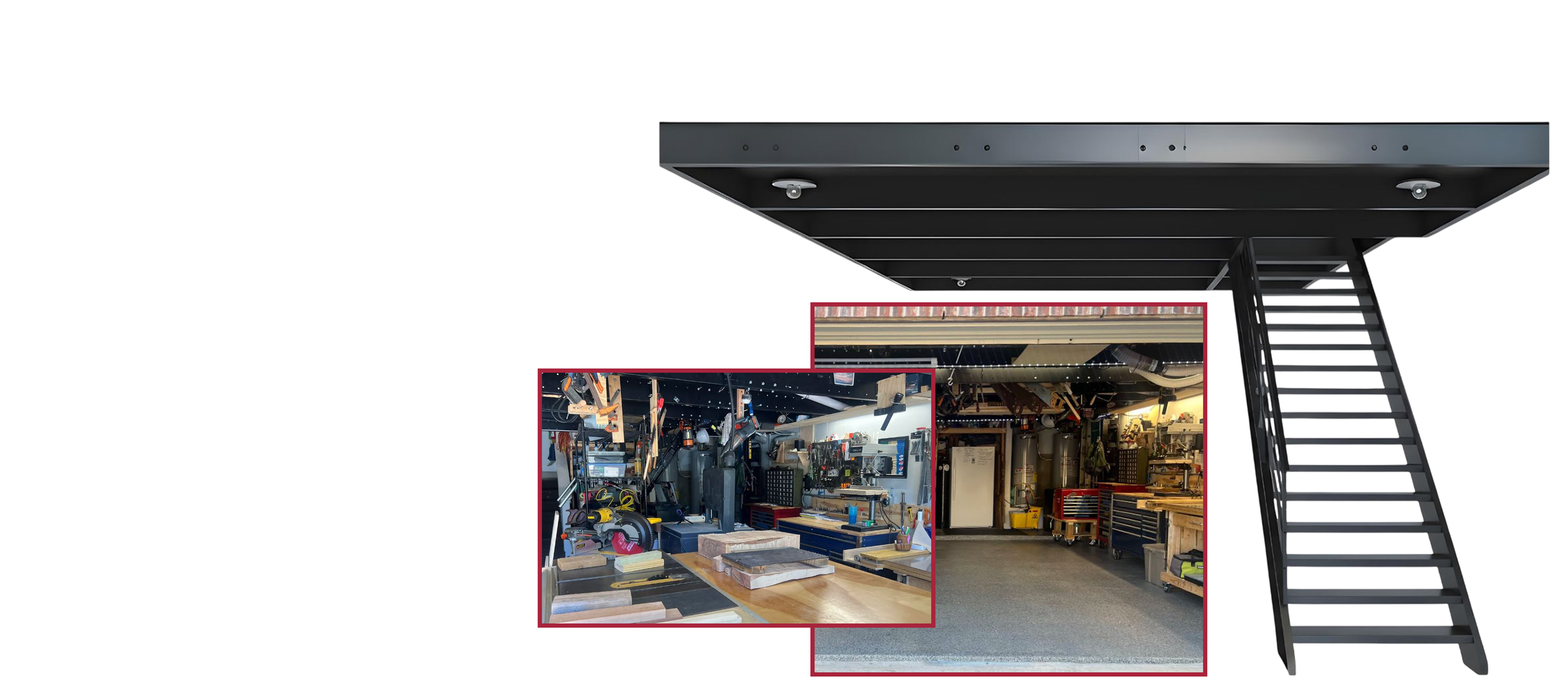 Organize tools, free up floor space or create a dedicated workshop with a mezzanine. Maximize your garage’s potential with a “take-with-you when you move” storage solution.